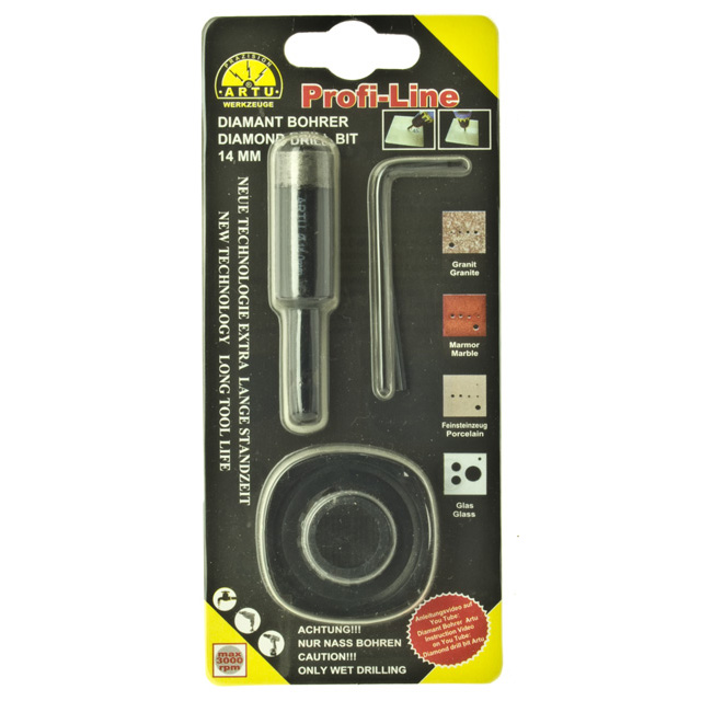 The New ARTU Diamond Core Drill Bits have an extremely long tool life. You can drill 50 holes in the hardest porcelain tile. Ideal for Granite, Porcelain, Marble & Glass