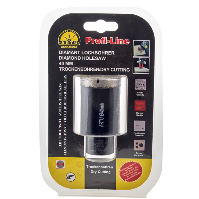 The New ARTU Diamond Core Hole Saws have been designed to drill our modern day polished porcelain tiles. They have a long tool life, over 50 holes in the hardest porcelain tiles using coolant. Ideal to drill into marble and granite bench tops for taps, flick mixers or bathroom fittings, even glass.