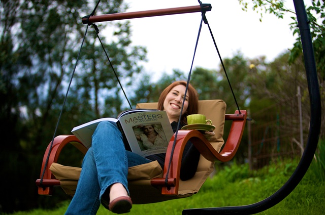 In our busy lives, relaxtion is so important for our well being. The Cloud 9 Hanging Chair is a deluxe Hammock Style Chair designed for the sole purpose of relaxation. With it's beautifully hand crafted wooden arms and foot rest, it really does make this a very comfortable way to wind down and rest at home. Unlike a hammock, it is easy to get in and out of and only requires one hanging point, so it hangs even in a small space. Hang it from your verandah, patio, a large tree, by the pool on our portable C-Frame (C-Frame Sold Separately) and enjoy your favourite part of the backyard.