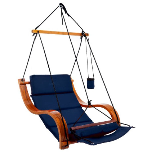 In our busy lives, relaxtion is so important for our well being. The Cloud 9 Hanging Chair is a deluxe Hammock Style Chair designed for the sole purpose of relaxation. With it's beautifully hand crafted wooden arms and foot rest, it really does make this a very comfortable way to wind down and rest at home. Unlike a hammock, it is easy to get in and out of and only requires one hanging point, so it hangs even in a small space. Hang it from your verandah, patio, a large tree, by the pool on our portable C-Frame (C-Frame Sold Separately) and enjoy your favourite part of the backyard.