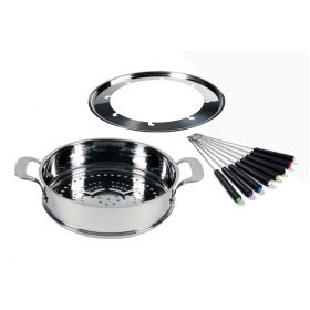 The Steamer / Fondue Kit is a combined set that will give you the ability to steam for very healthy cooking as well as fondue fun.