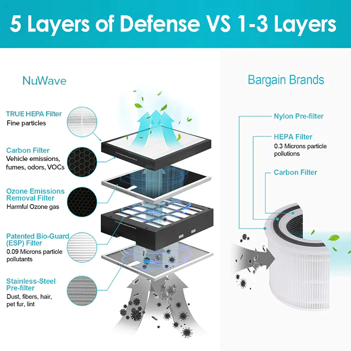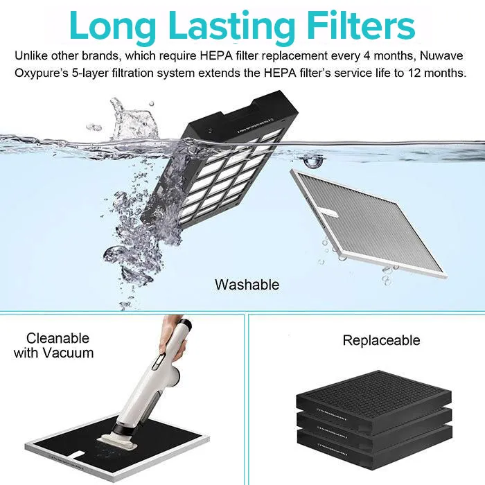 The NuWave Oxypure has a powerful advanced 5-filter system technology. It includes: