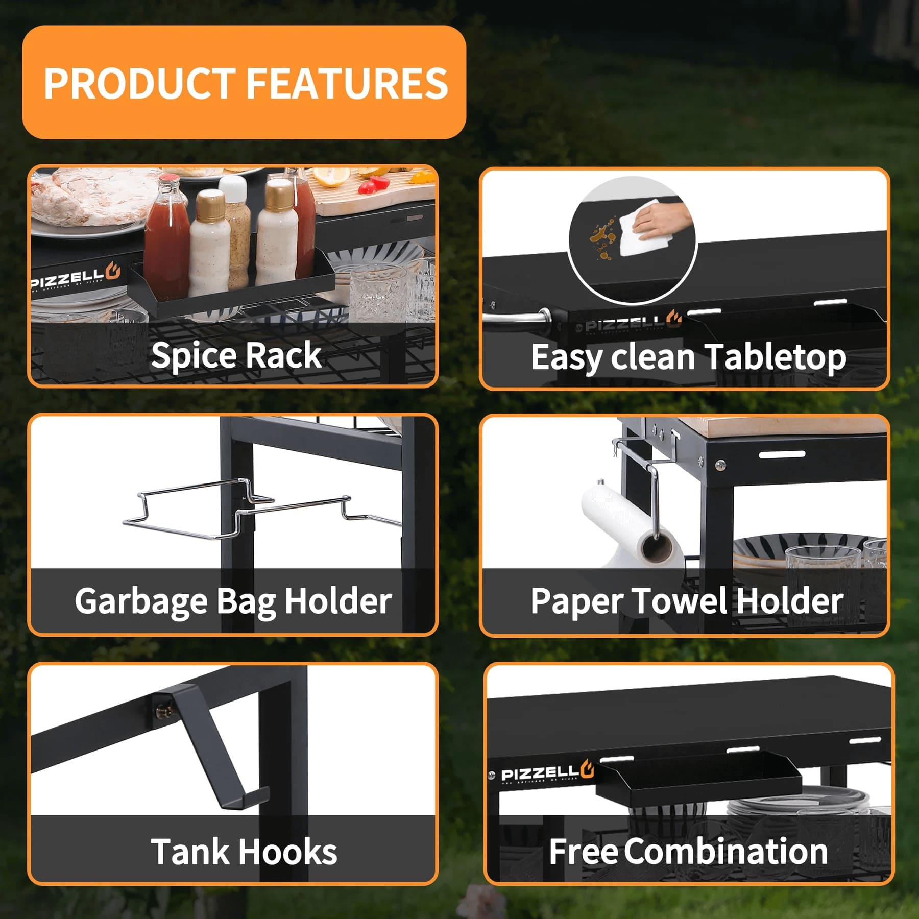 The Best Partner For Pizzello Pizza Ovens. PIZZELLO Three-Shelf Outdoor Grill Dining Cart Outdoor Worktable with 2 Wheels. Movable BBQ Trolley, Multifunctional Solid Steel, Food Prep Worktable.
